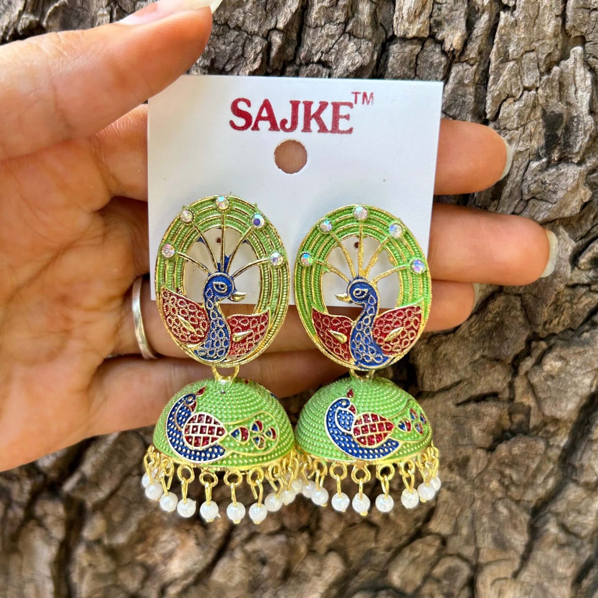 Home » Shop » Green Peacock Jhumka || Navratri Special