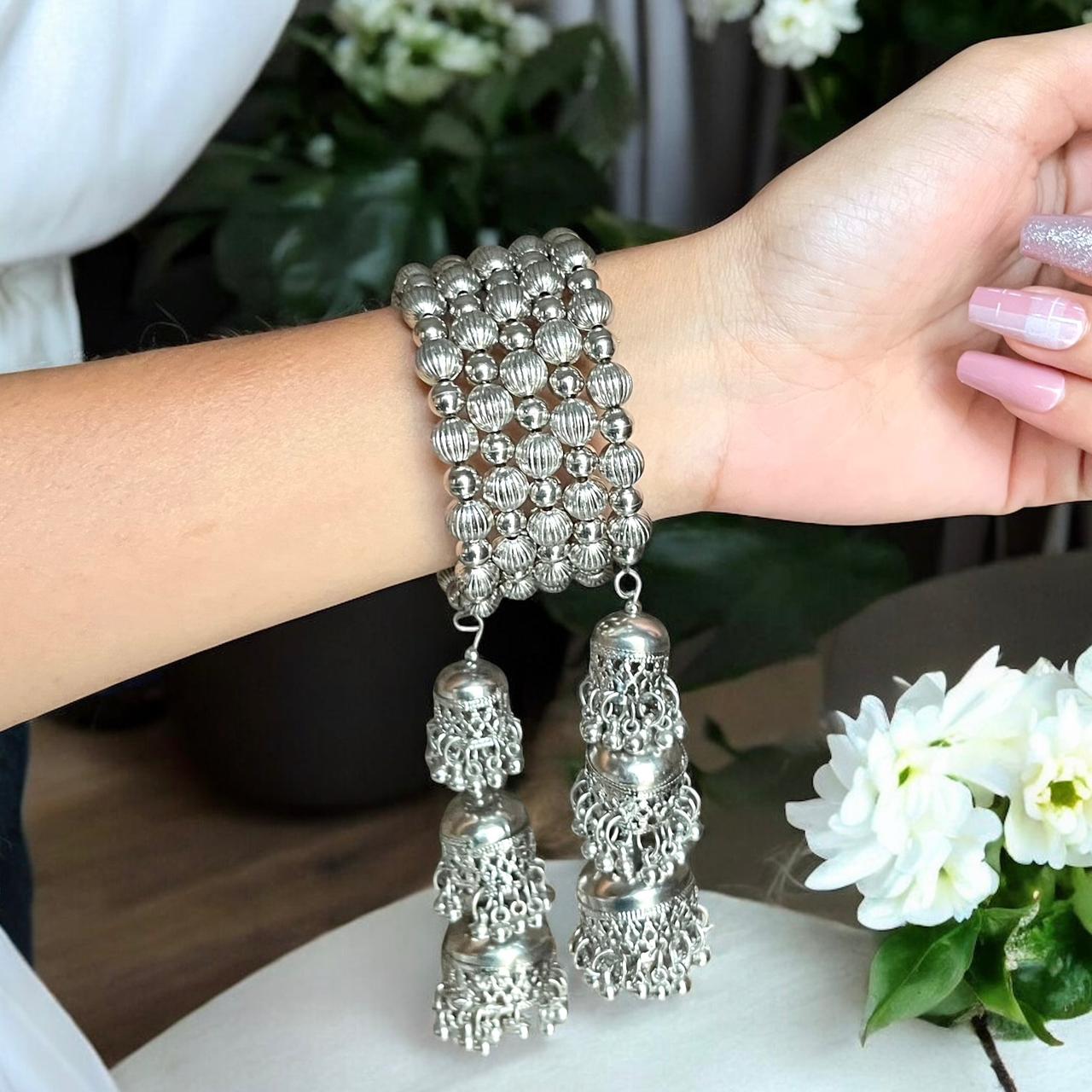 Oxidized Silver Bracelet with Beads & Jhumkas