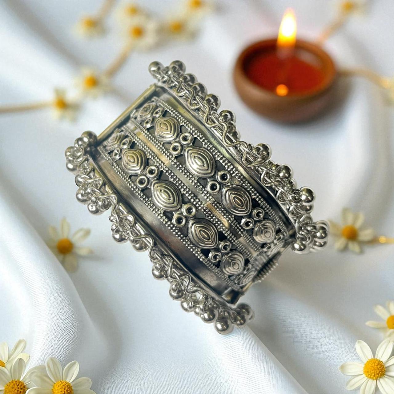 Be the first to review “Oxidized Silver Bracelet with Corner Ghunghroo Accents – Medium Size (Design 6)”