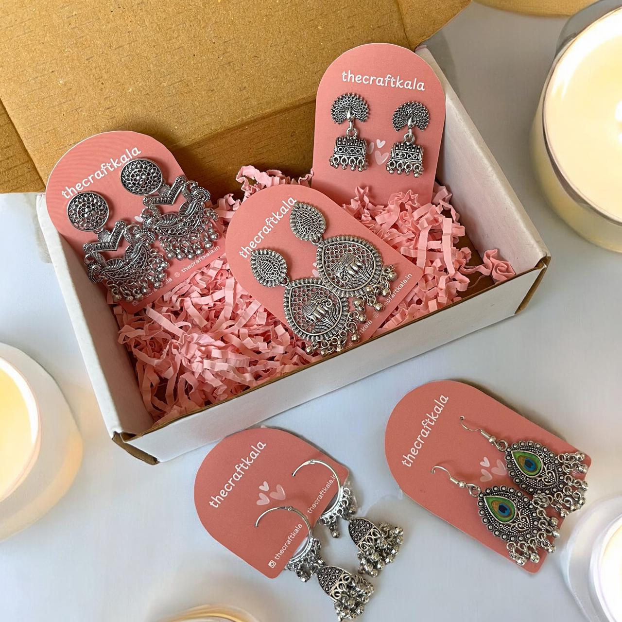 Set of 4 Desi Oxidized Earrings & 1 Bracelet (Combo 5) Original price was: ₹500.Current price is: ₹349.