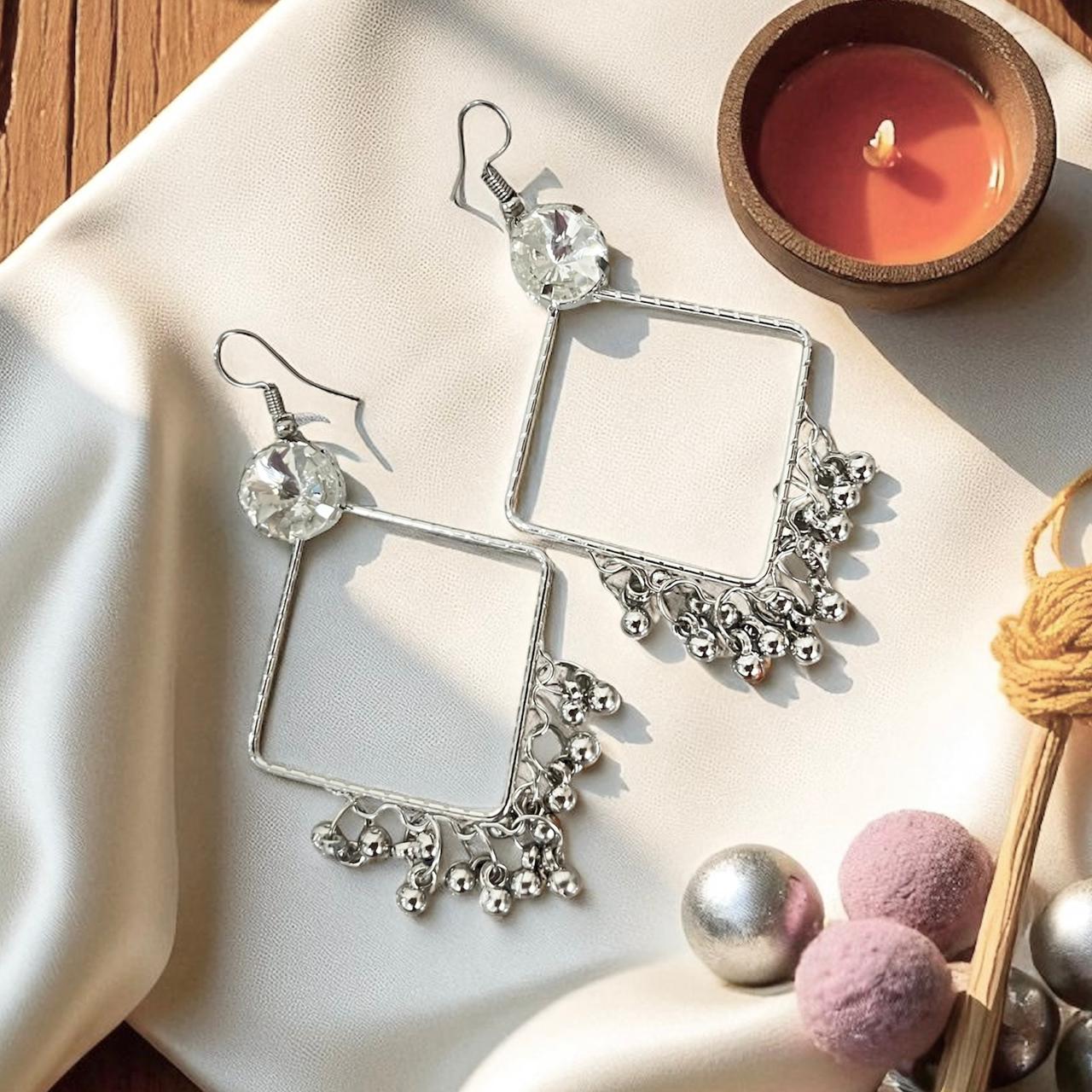 Be the first to review “Silver Square Hoop Earrings with beads”